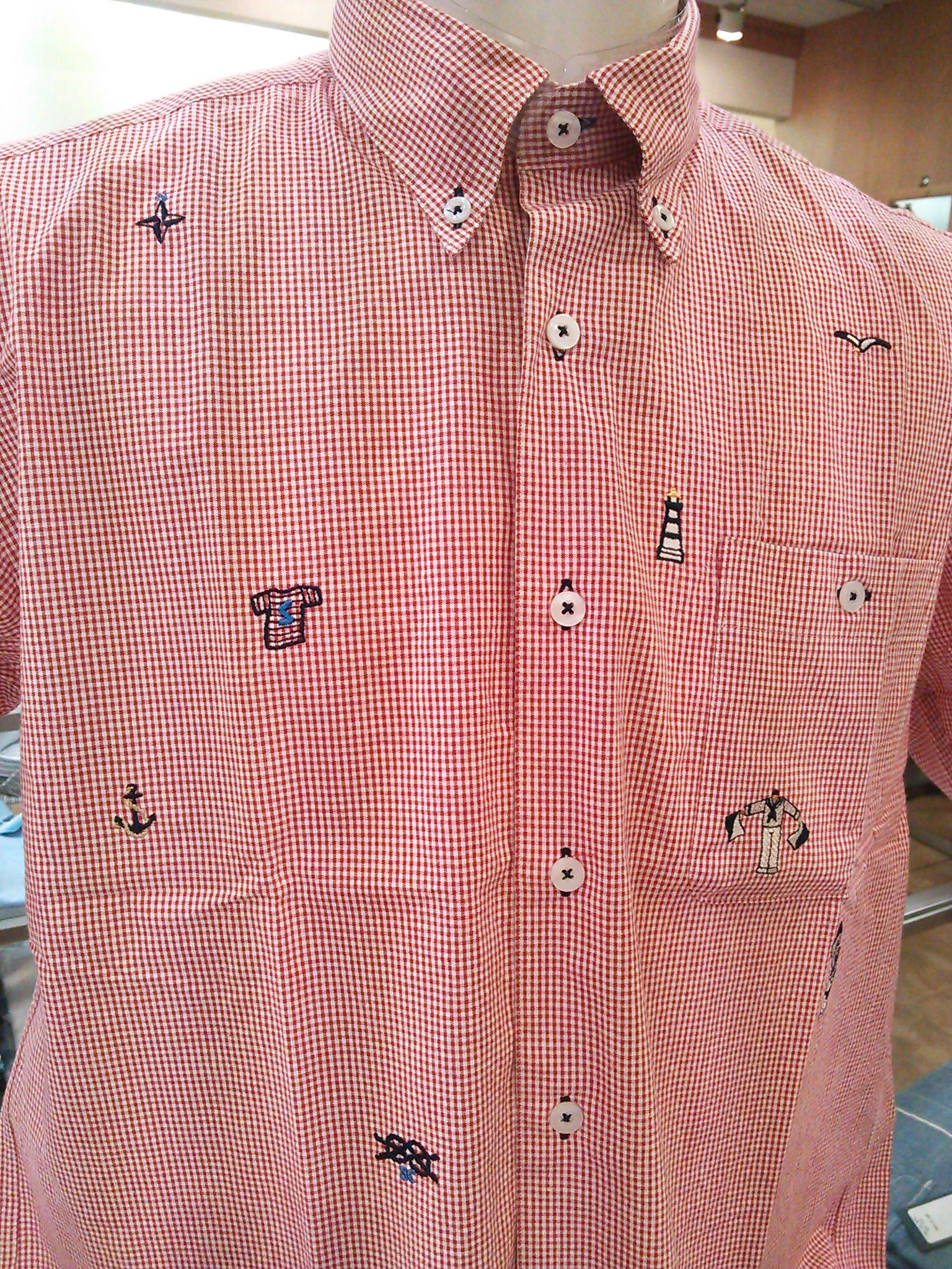 メンズ半袖ブロードギンガムボタンダウンシャツ